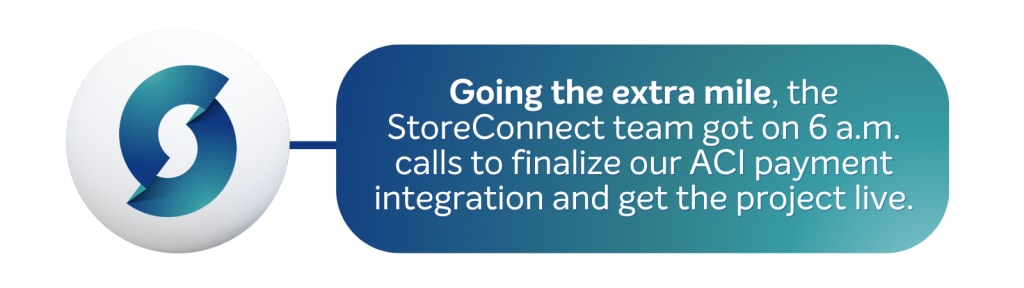 Even a non-standard payment processor (ACI) that initially seemed like a roadblock was quickly solved through close collaboration between the StoreConnect and Servio teams.